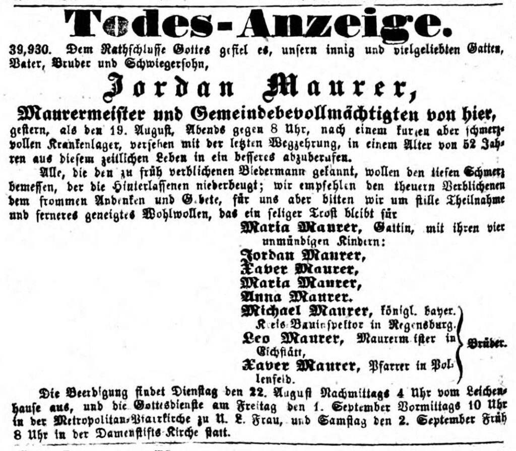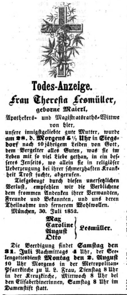 gest. 28. Juli 1852 im 58. Lebensjahre.
