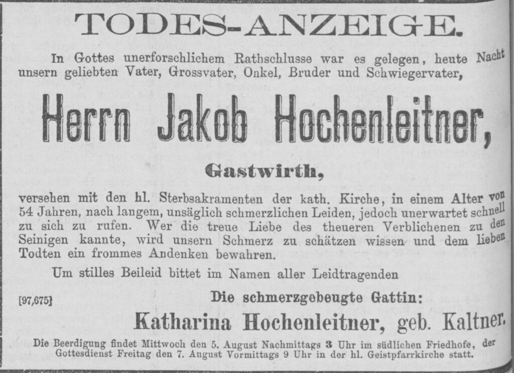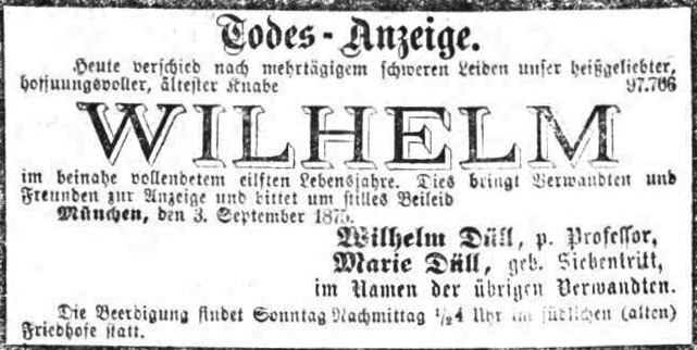Cälestin Sporrer geb. 13. Juli 1859, gest. 26. Juni 1860.