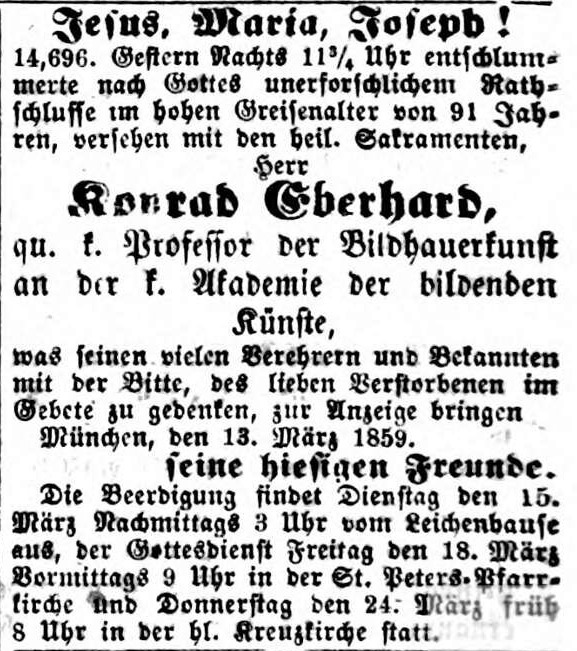 Grab der Familie Eberhard auf dem Alten Südfriedhof München. Abbildung aus: Auswahl der vorzüglichsten Denkmäler des Münchner Kirchhofes. 3. Band. München, 1841.