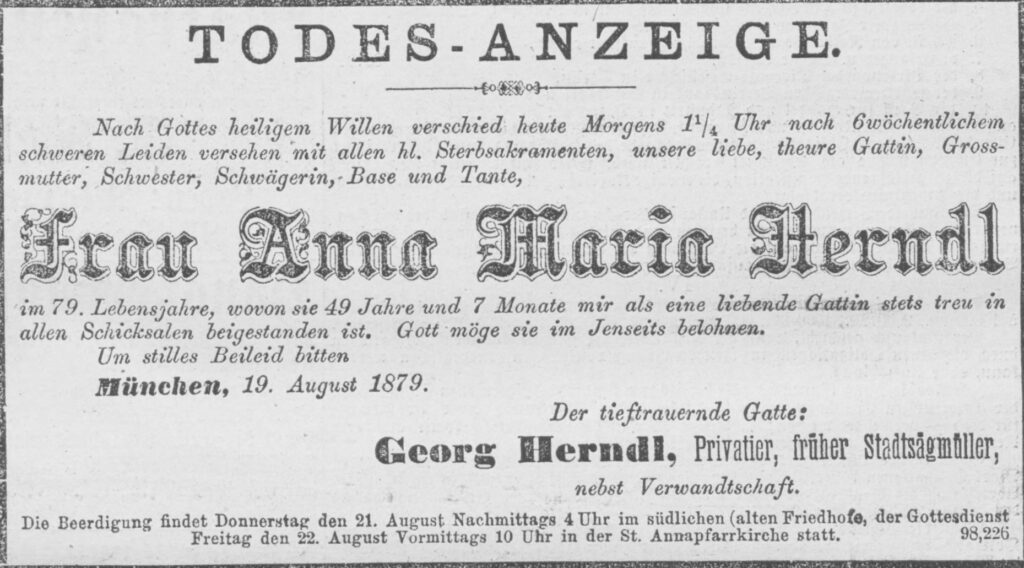 Grab der Familien Herndl · Sedlmayer auf dem Alten Südfriedhof München (Juli 2020)