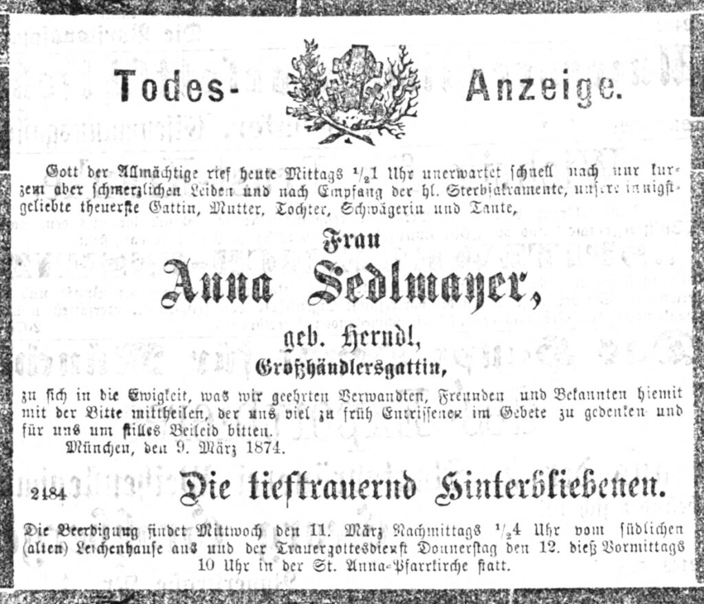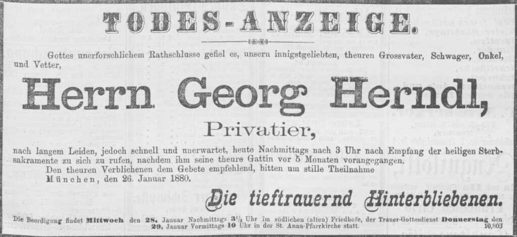 Grab der Familien Herndl · Sedlmayer auf dem Alten Südfriedhof München (März 2014)