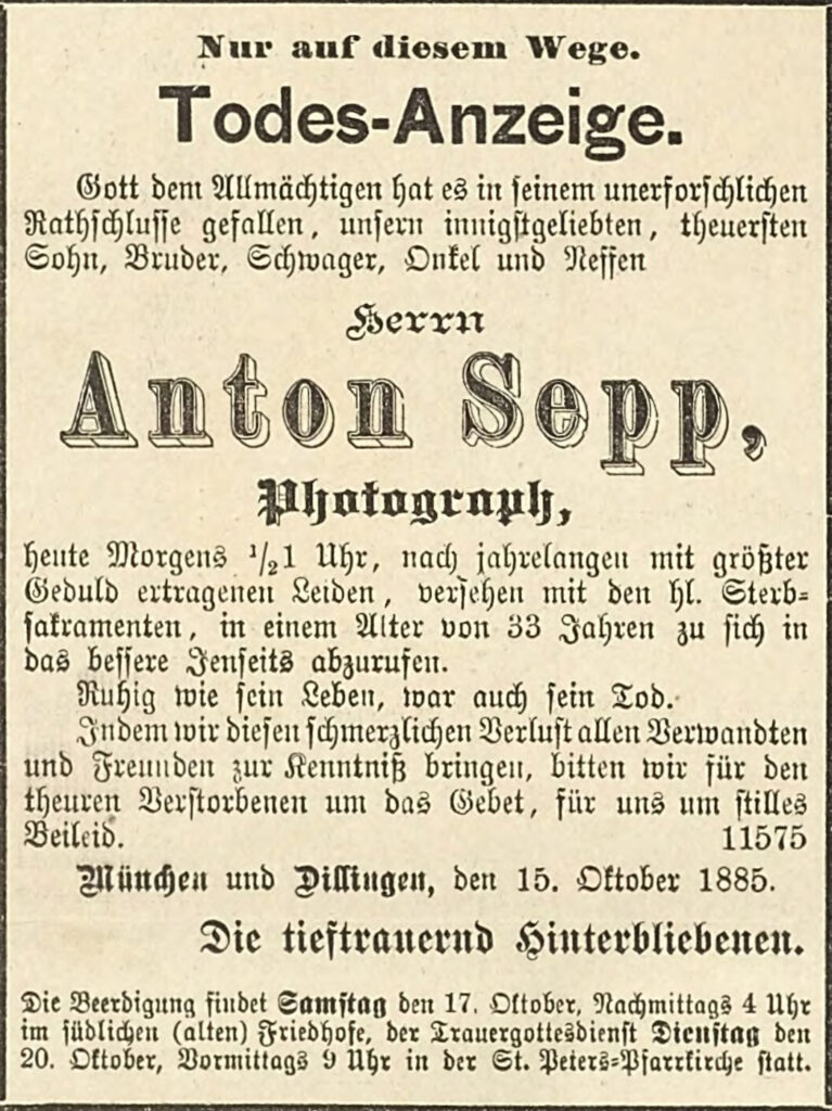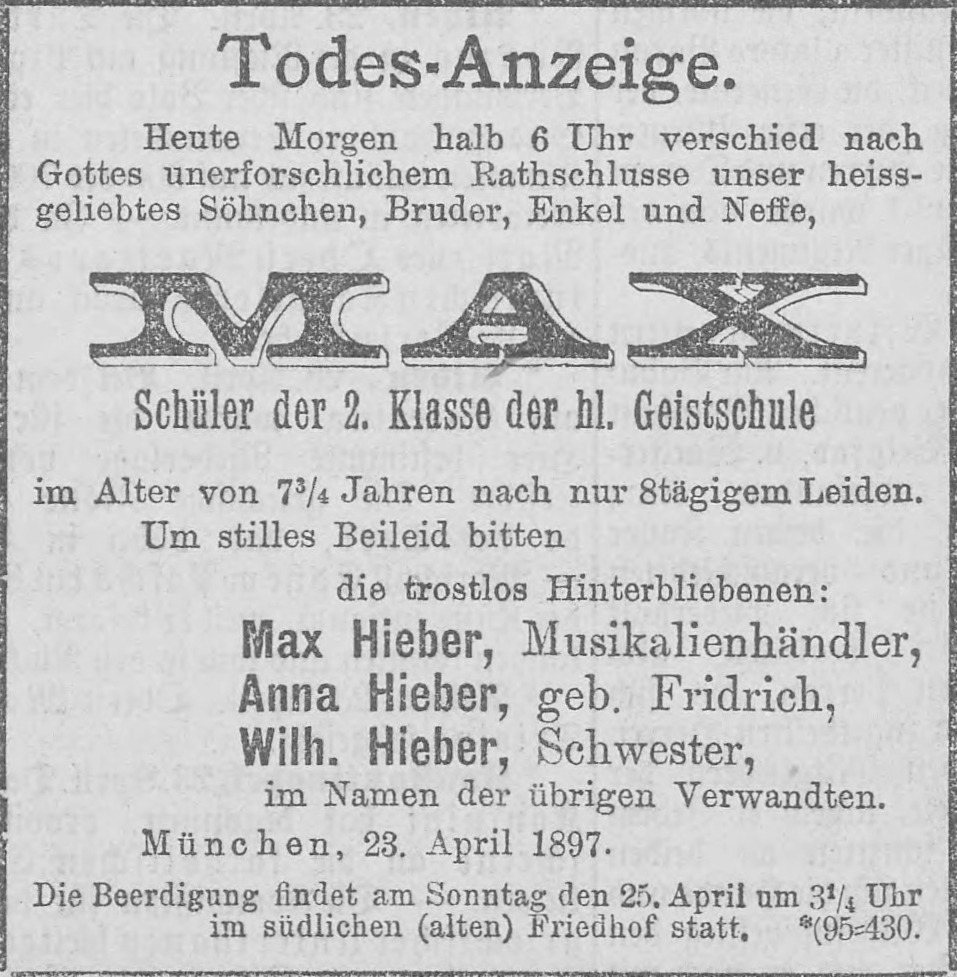 MAX * 22. NOV. 1885 † 29. MÄRZ 1886.