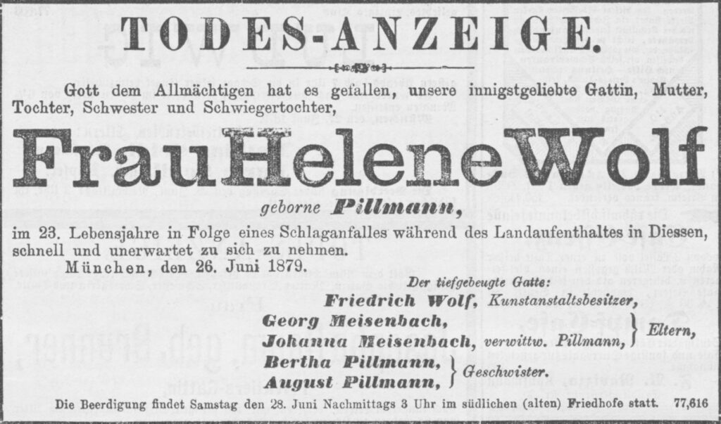 Grab der Familien Meisenbach · Pillmann · Wolf auf dem Alten Südfriedhof München (April 2015)