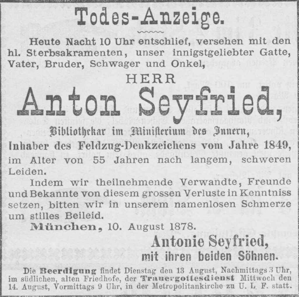Grab der Familie Seyfried auf dem Alten Südfriedhof München (April 2015)