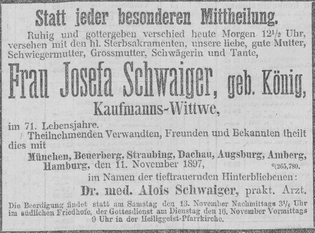 Grab der Familien König · Schwaiger auf dem Alten Südfriedhof München (Februar 2021)