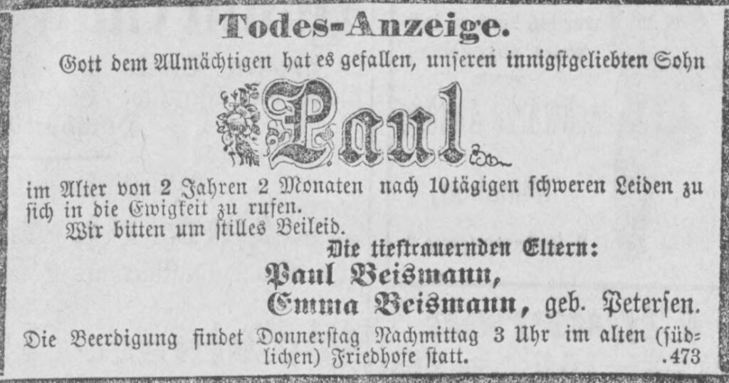 geb. 30. April 1877, gest. 30. Jan. 1886.