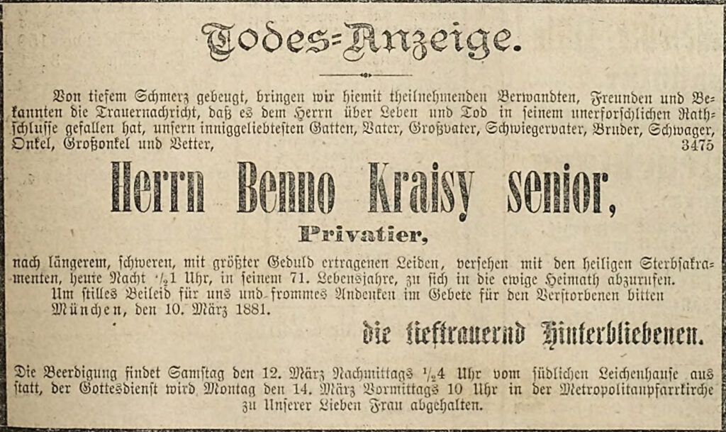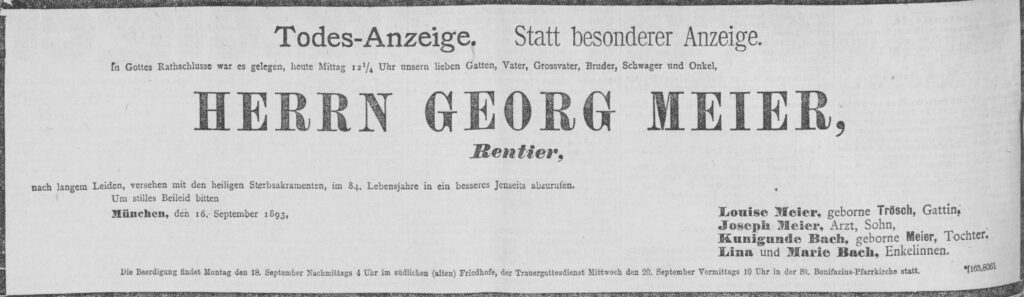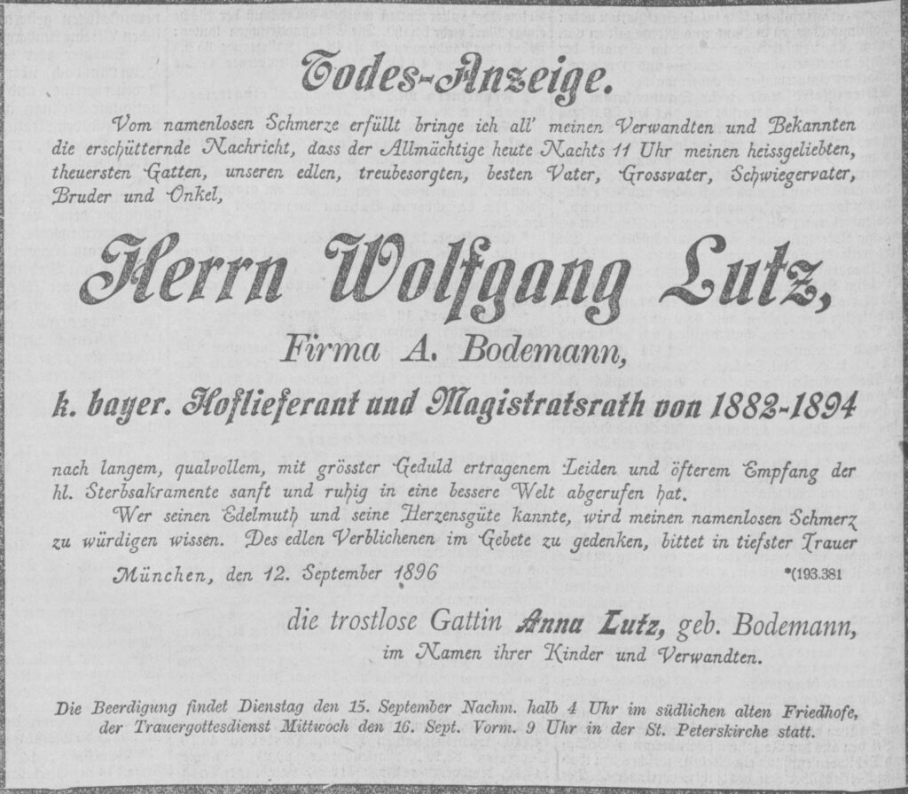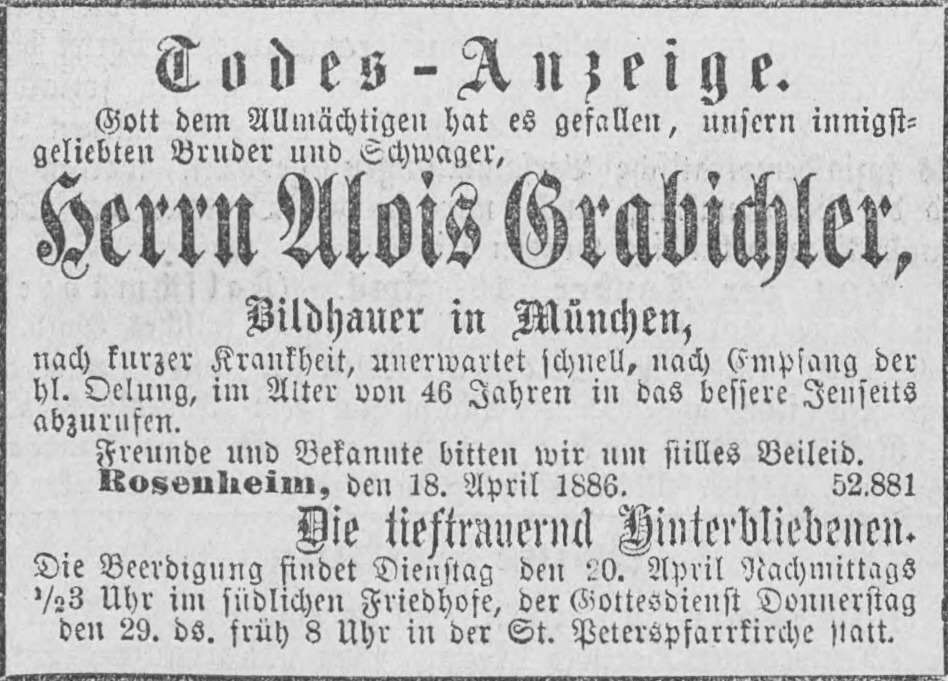 gest. den 16. April 1899 im 74. Lebensjahre.