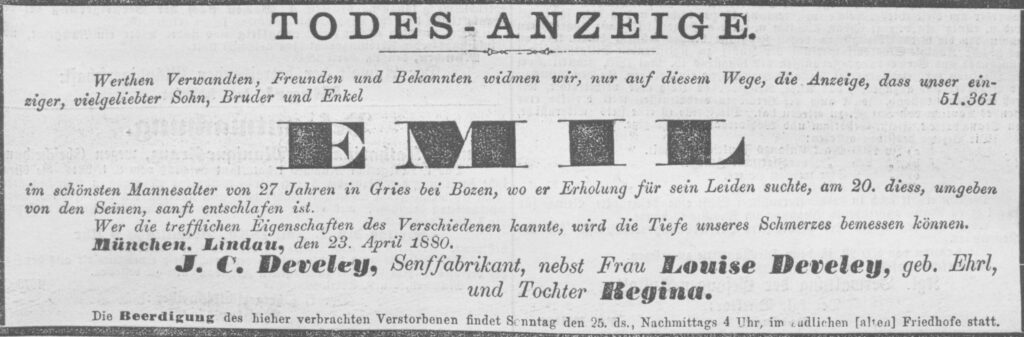 Grab der Familien Develey · Örter auf dem Alten Südfriedhof München (März 2008)