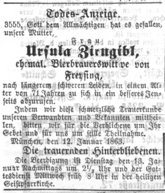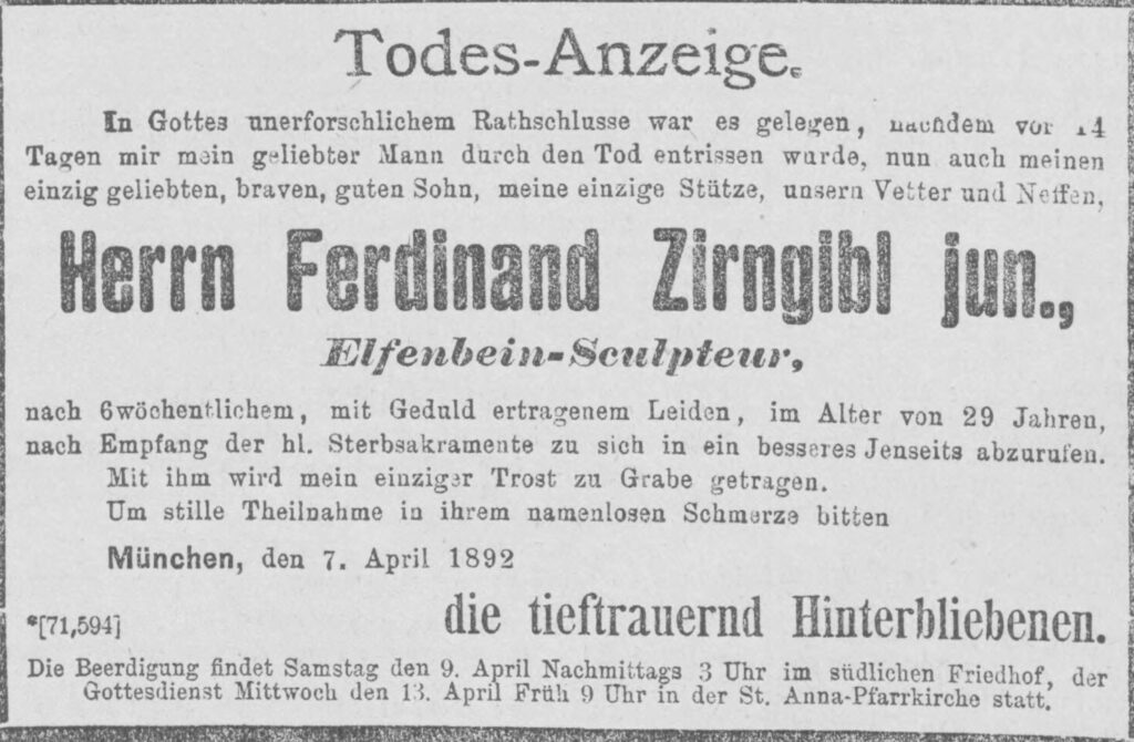Grab der Familie Zirngibl auf dem Alten Südfriedhof München (Dezember 2017)