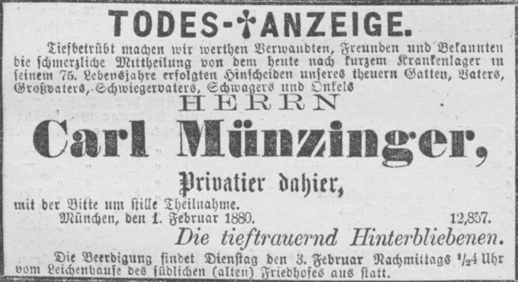 Grab der Familien Münzinger · Zink auf dem Alten Südfriedhof München (Dezember 2017)