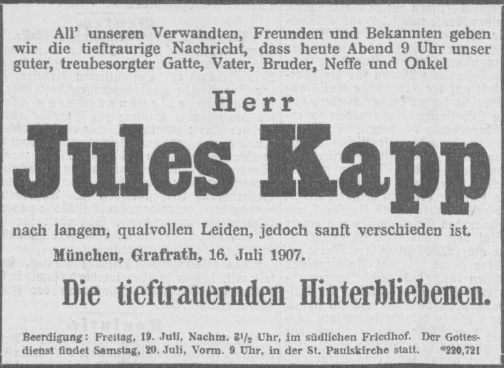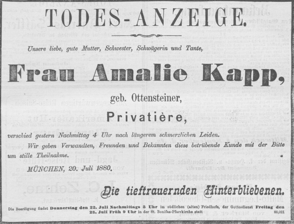 Grab der Familie Kapp auf dem Alten Südfriedhof München (Dezember 2012)