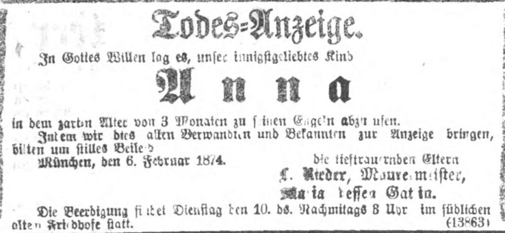 Grab der Familien Baumgartner · Bindl auf dem Alten Südfriedhof München (Februar 2021)