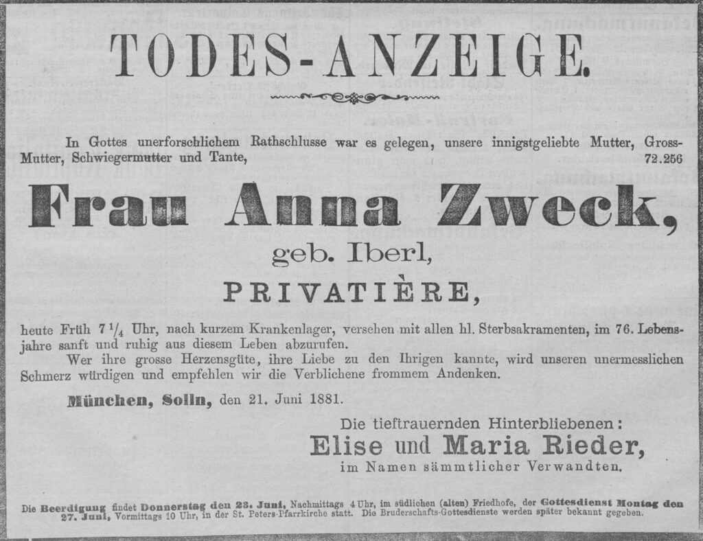 Grab der Familien Arendts · Rieder · Zweck auf dem Alten Südfriedhof München (August 2012)