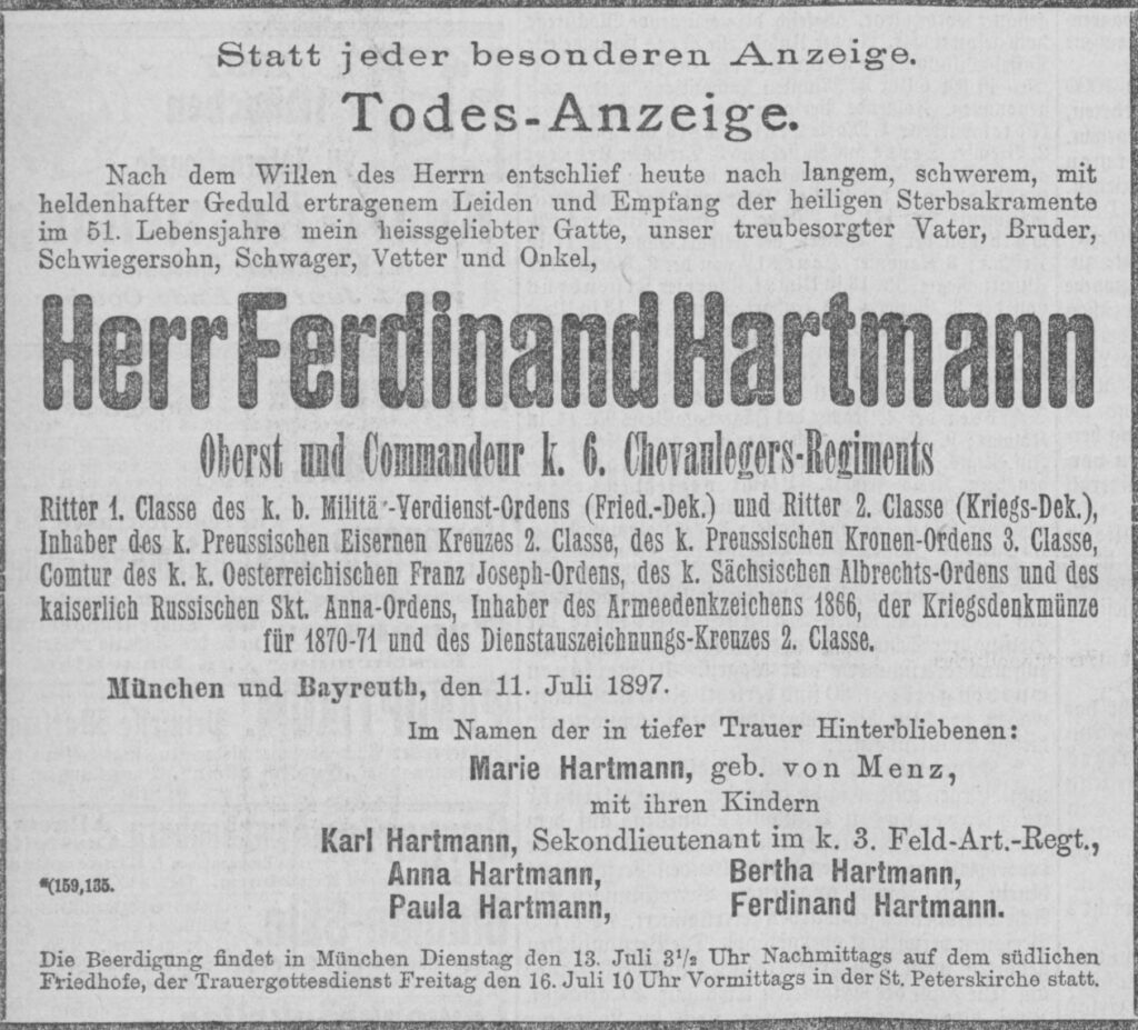 Grab der Familie Hartmann auf dem Alten Südfriedhof München (August 2012)