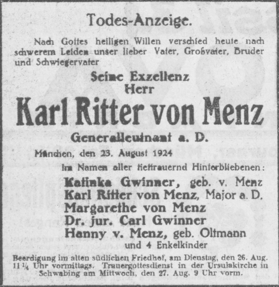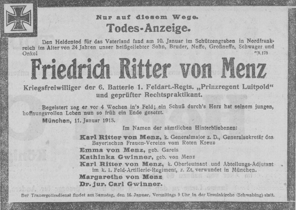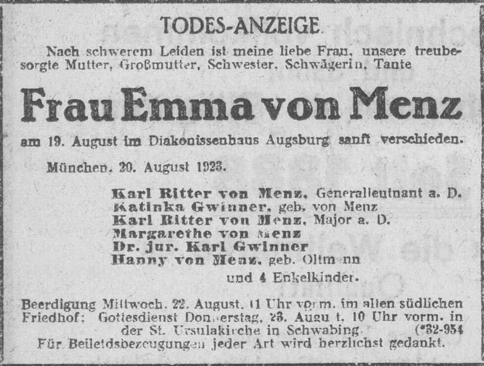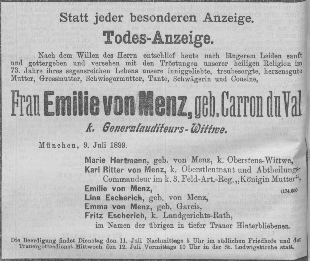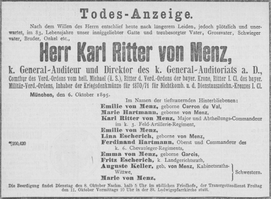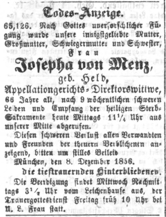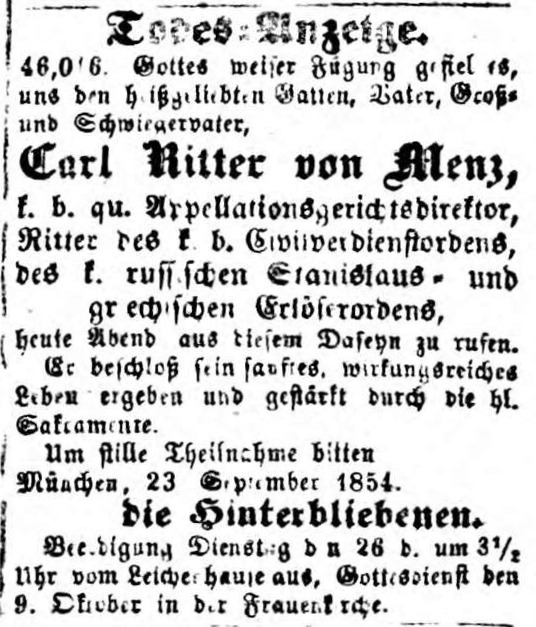 Grab der Familie Menz auf dem Alten Südfriedhof München (Februar 2021)