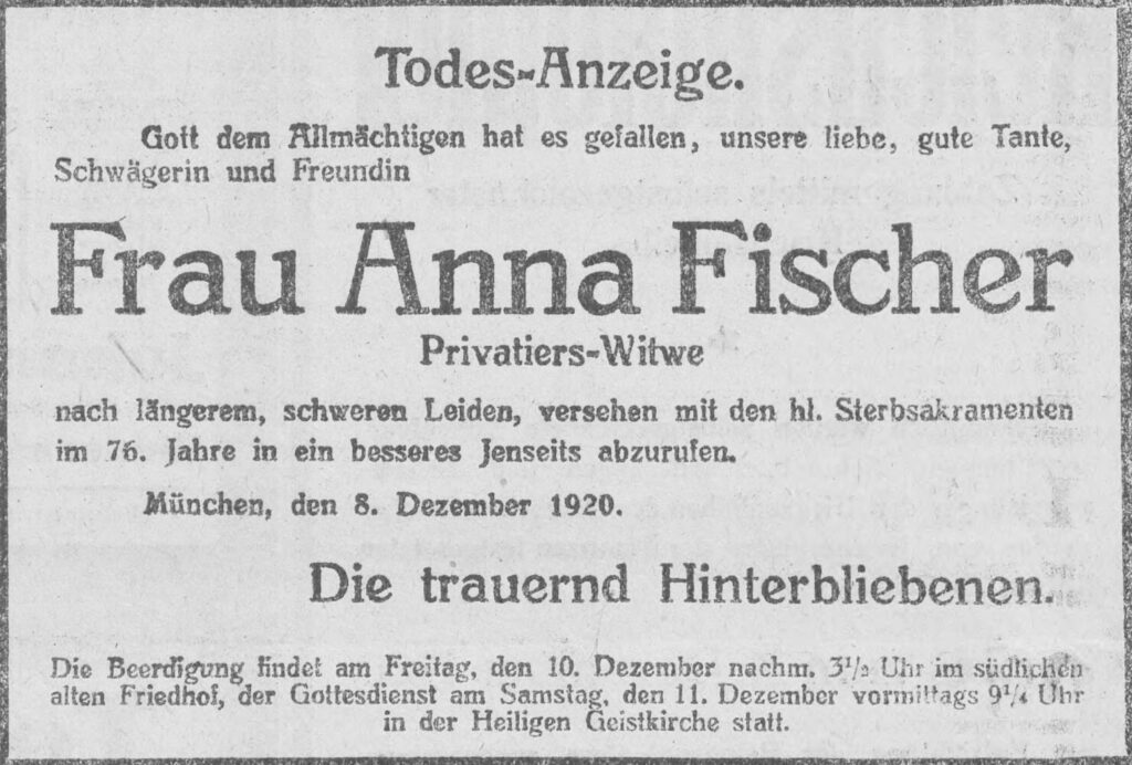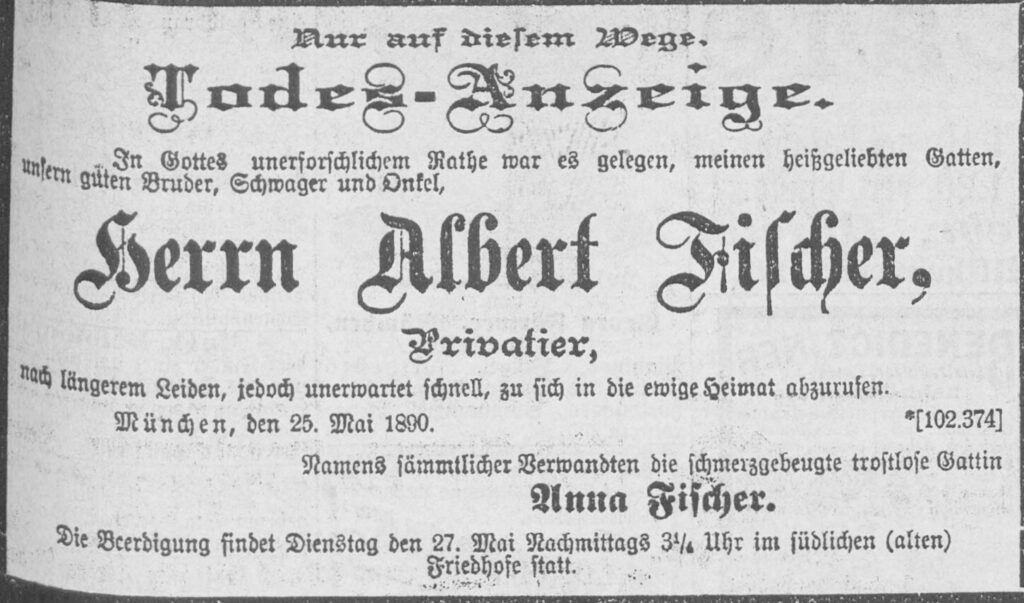 Grab der Familie Fischer auf dem Alten Südfriedhof München (Oktober 2014)