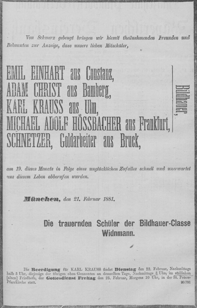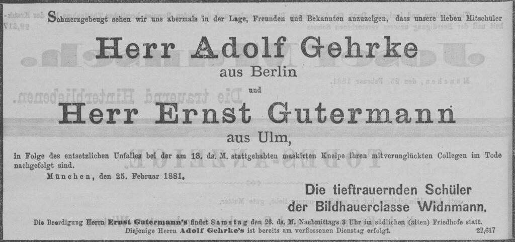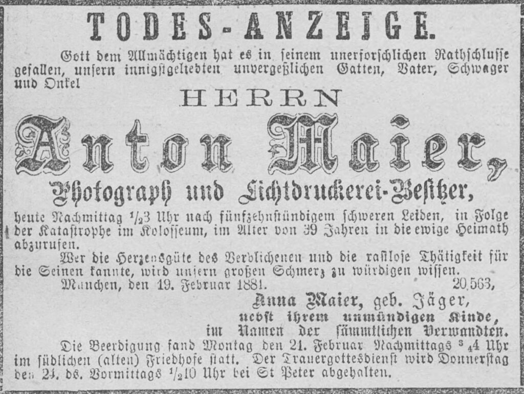 Grab der Opfer des Kolosseum-Brandes auf dem Alten Südfriedhof München (Februar 2021)