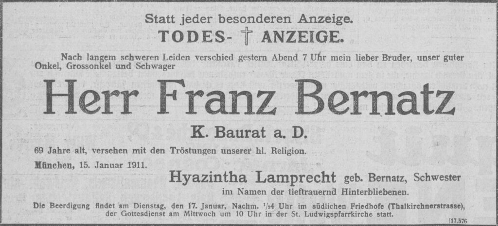 gest. d. 7. Aug. 1917, im 85. Lebensjahre.