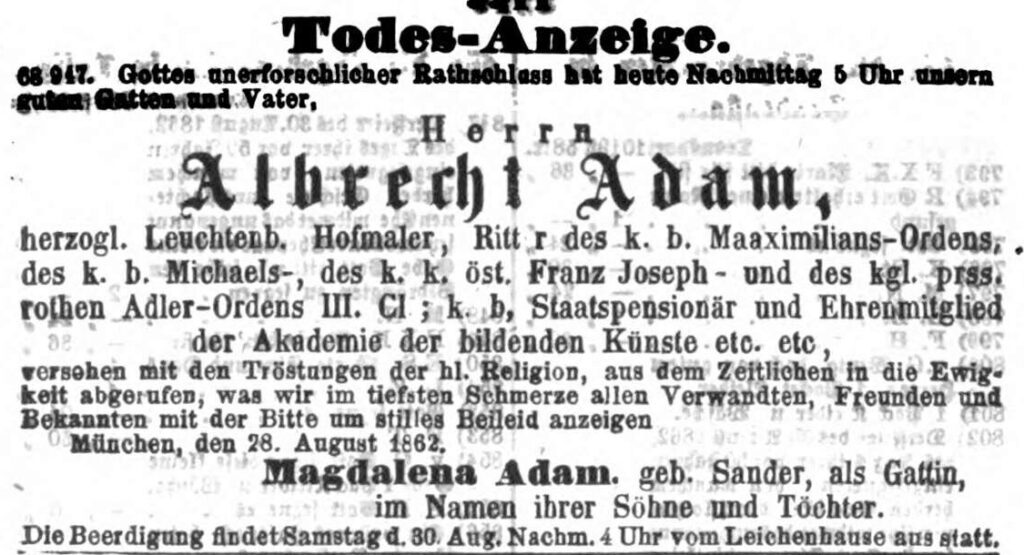 Albrecht Adam: Selbstportrait. Abbildung aus »Aus dem Leben eines Schlachtenmalers«, Stuttgart, 1886.