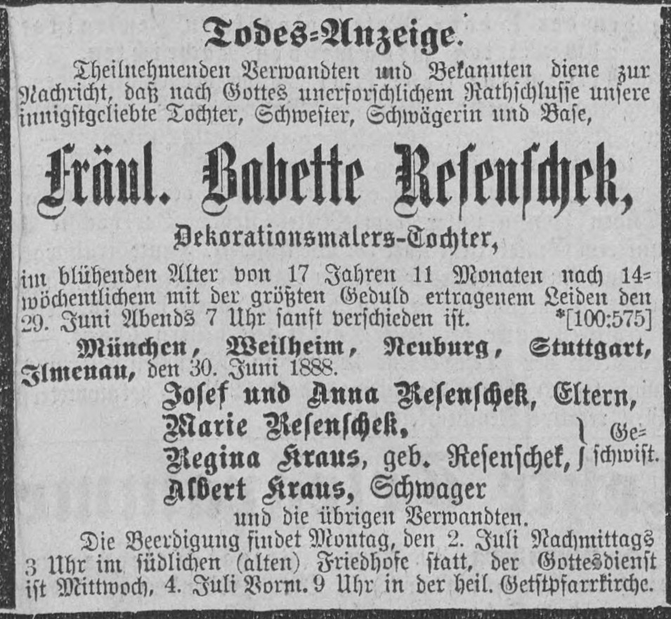 geb. in München d. 8. Dez. 1832, gest. 25. Nov. 1897.