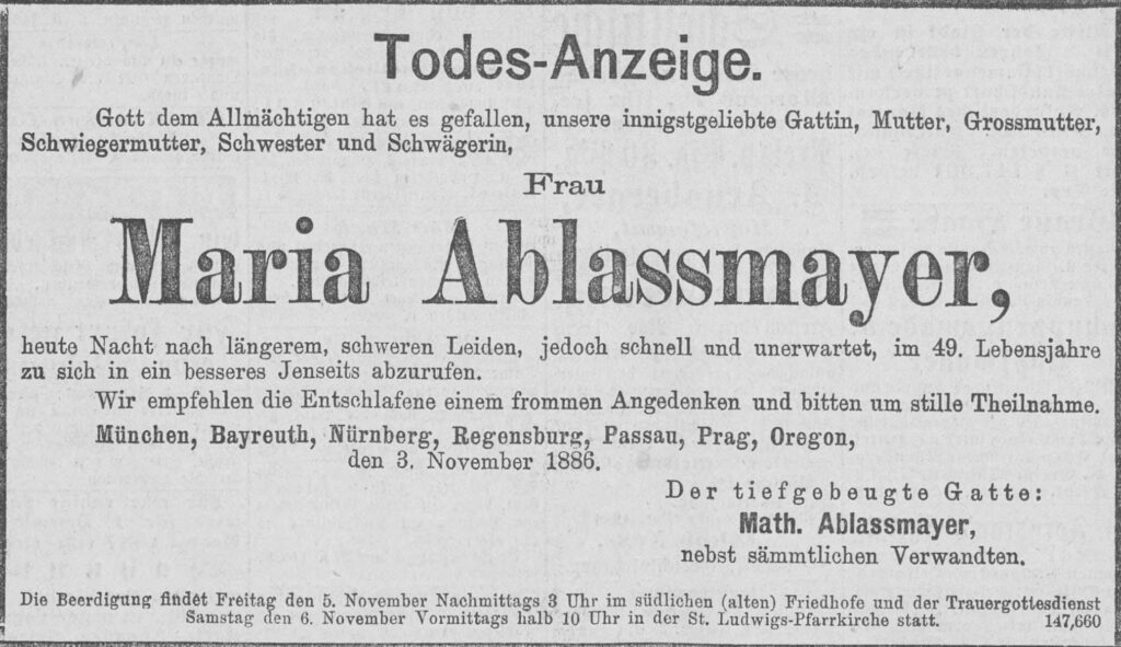 geboren den 30. März 1798, gestorben den 25. Jänner 1874.