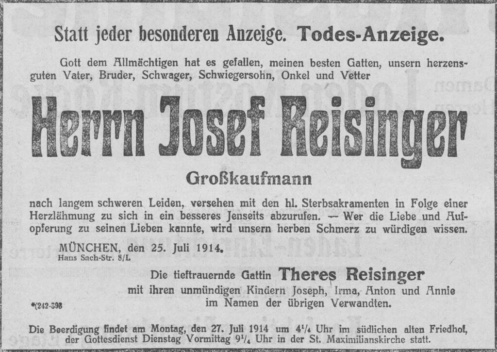 unser geliebter unvergesslicher Gatte u. Vater