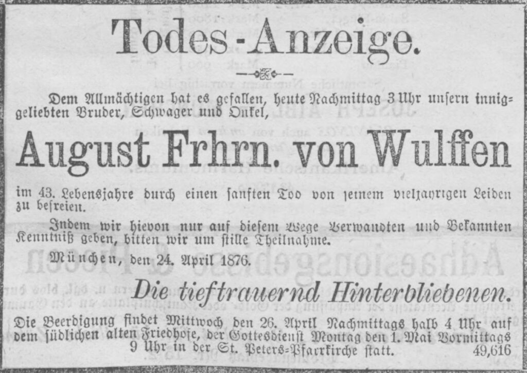 geb. 17.XI.1814, im Kriege gegen Frankreich gefallen 15.XII.1870.