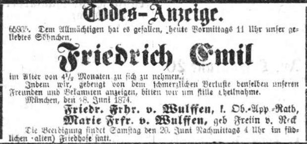 Hugo, geb. 14. Aug. 1869, gest. 1. März 1873.