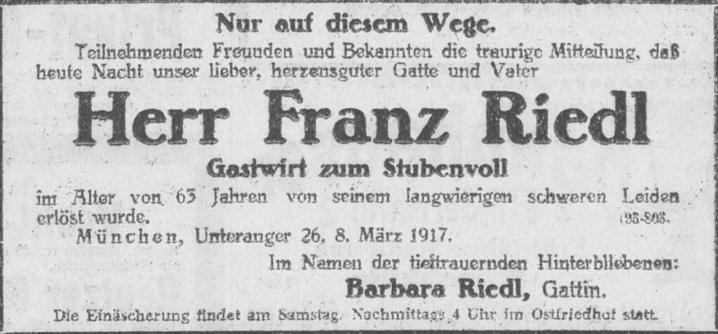 GEST. MÜNCHEN 19. JANUAR 1919.